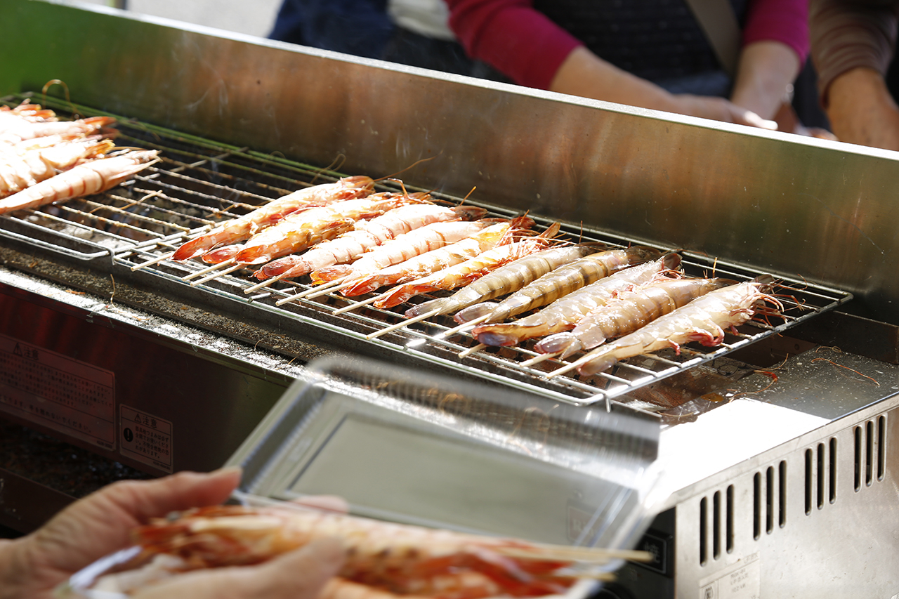 まつり会場ではアシアカエビの塩焼きの販売などで大いににぎわいました。